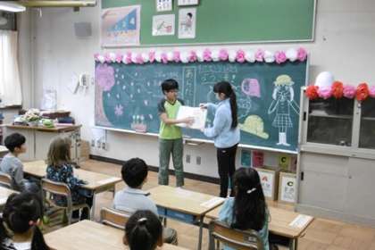 さっそく1年生のお世話 頑張っています! 公開日 2017/04/07 更新日 2017/04/13 6年 自分の朝の準備を素早く済ませ、1年生の教室へ行き、ランドセルの置き方や本の読み聞かせなど、いろいろなお手伝いをしています。 今日は中休みも教室へ行き、一緒に遊んでくれた6年生もいました! いいね(0)