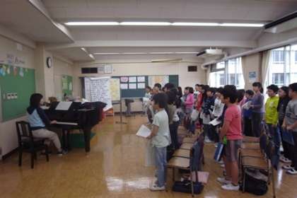 今年度最初の音楽では、「茶色の小びん」を合奏するための練習をしました。これからがとても楽しみです。