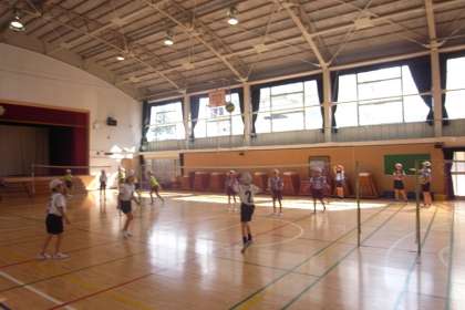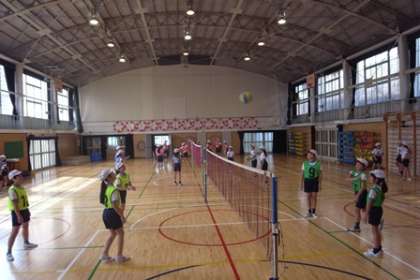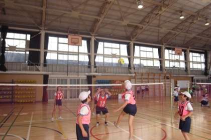 5年生の体育では、「ソフトバレーボール」に取り組んでいます。チームに分かれて、どのように攻撃したらいいかを考えながらはじめのゲームに取り組みました。これからの試合が楽しみです。