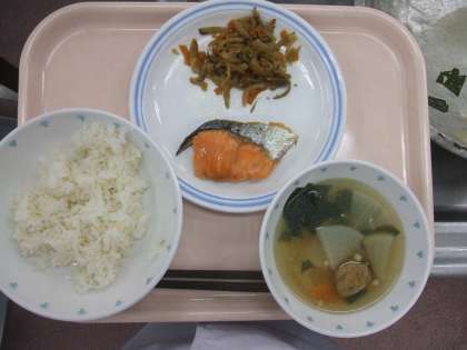 鮭の塩焼き、きんぴら、牛乳
