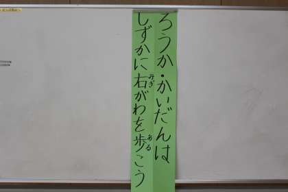 今週の目標は、「廊下や階段は静かに右側を歩きましょう」です。