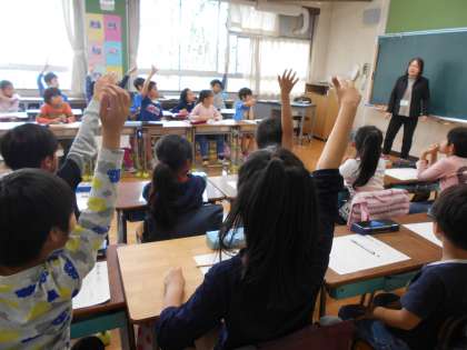 3年 国語 授業参観 公開日 2017/04/20 更新日 2017/04/20 専科 3年生の授業参観では、春の言葉さがしをしました。 「花見」「こどもの日」にまつわる言葉や春に関係する言葉をお友達と相談しながら、言葉を見つけていきました。初めて聞く言葉に歓声もあがりました。 ご参観ありがとうございました。 いいね(0)