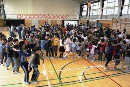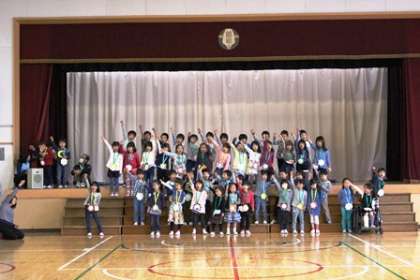 歌やダンスを混じえた学校紹介や、メダルのプレゼント、貨物列車のゲーム、先生や学校についてのクイズなどで楽しみました。