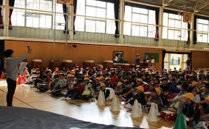 体育館に全校で集まった後、各グループに分かれて、今年度の人員と、通学路の危険箇所などを確認しました。