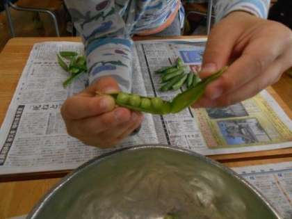 グリンピースのさやを一生懸命むきました。