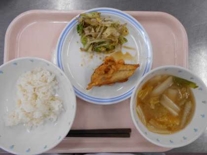 5月11日 和食 公開日 2017/05/11 更新日 2017/05/11 給食 献立 ごはん、サバの揚げ煮、春野菜の豚汁、梅しそ和え、牛乳 材料の主な産地 生姜 高知県、にんじん 徳島県、だいこん 千葉県、 白菜 茨城県、もやし 神奈川県、たまご 青森県、 生揚げ 愛知県・佐賀県、豚肉 埼玉県、サバ ノルウェー、 きゃべつ 千葉県、わかめ 四国 いいね(0)