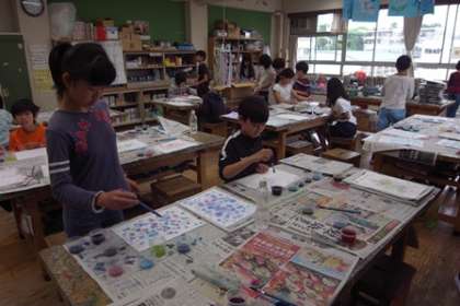 今日の図工は「空にえがく」に取り組みました。半紙にいろいろな色を使って、自分だけの空を描きました。