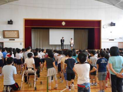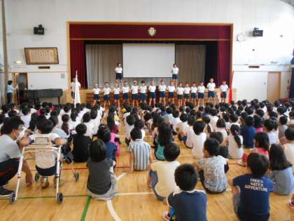 全校朝会 公開日 2017/05/22 更新日 2017/05/22 専科 今日の全校朝会では、教育実習生の紹介と運動会の応援コールの練習をしました。 オリジナルの応援コールをおぼえて、近づいてきた運動会が楽しみになりました。 いいね(0)