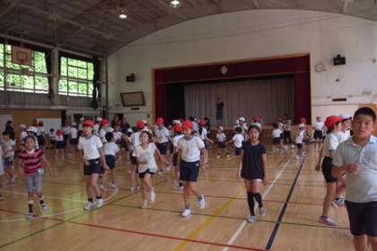 今日の昼休みは、3年生と一緒に全校ダンスの練習をしました。たくさん踊って、声を出して、とても楽しかったです。