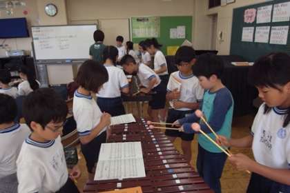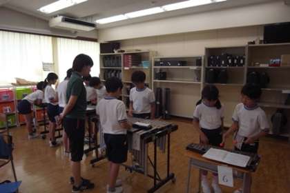今取り組んでいる「茶色の小びん」も、鉄琴、リコーダーの他に、木琴も増えて演奏の練習をしています。みんなで演奏会をするのが楽しみです。