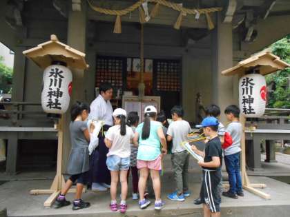 氷川神社、菅刈住区センター、大橋図書館、菅刈公園です。