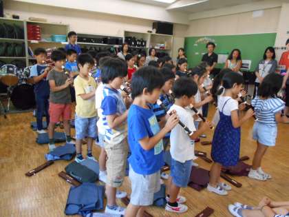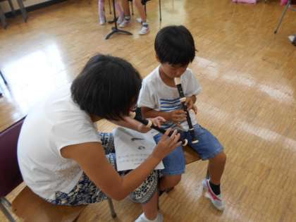 リコーダー交流学習 公開日 2017/06/21 更新日 2017/06/21 3年 学校公開日の5校時に、3年生と6年生のリコーダー交流学習会をしました。 初めてのリコーダーに挑戦する3年生を、6年生が優しく丁寧に教えてくれました。 最後に6年生が見守ってくれている中、「たこたこあがれ」を上手に演奏することができました。6年生のきれいな演奏も聴かせてもらいました。 これからどんどん上達するように頑張って練習しましょうね! いいね(0)