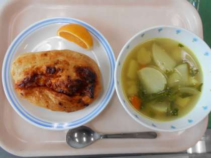 手作り夏野菜パン、かぶのカレースープ、