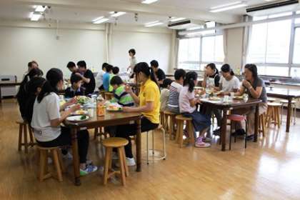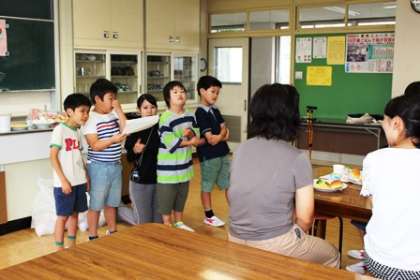 朝食を食べ終わるころ、1・2年生が登校してきます。