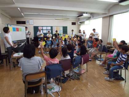 音楽の研究授業 公開日 2017/07/07 更新日 2017/07/07 2年 「音の高さのちがいをかんじとろう」という題材で、音を聴いて音の高さのちがいを感じたり、手で表したりしました。 この学習で音の高さを感じとれるようになり、ますます歌が上手になってくれるとうれしいです。 いいね(0)