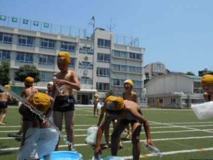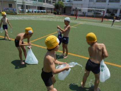 みずあそび、たのしいな!(その1) 公開日 2017/07/11 更新日 2017/07/11 1年 7月10日(月) 今日は、とってもいい天気で、 水遊びには最高の一日となりました。 1年生は、水着に着替え、 自分のペットボトルや袋を持って、 水道やたらいにレッツゴー! 校庭は、子供たちの楽しい声でいっぱいです。 いいね(0)