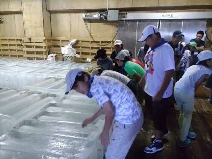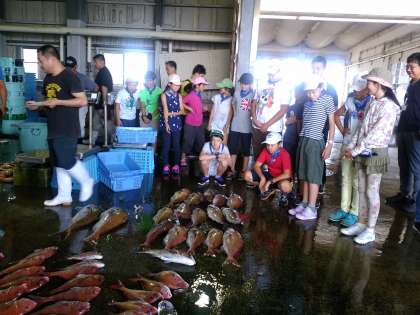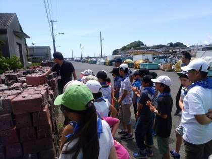 大原漁港に到着し、2組は先に漁港見学をしました。