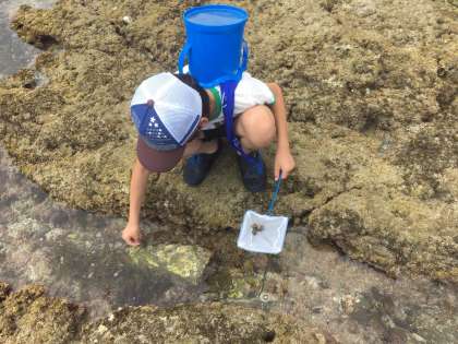 みんな夢中で生き物探しをしています。