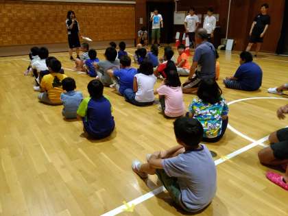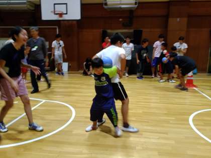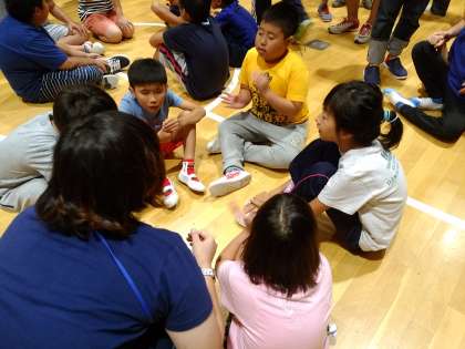 猛獣狩りに行こうよ、背中ボール運び、パイプラインなどを他の学校の人と同じグループになり、楽しく活動しました。
