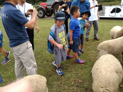 ファームツアーの途中では、トラクタートレインをおりて動物に餌やり、シープドックが羊を操るところを見たりしました。