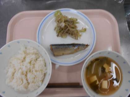 ごはん、さんまの塩焼き、赤だしのみそしる、うめしそ和え、牛乳