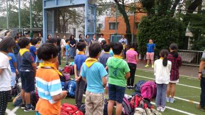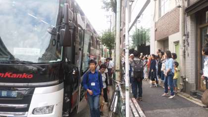 学校で出発式を終え、35人の児童が元気にバスに乗り込みました。
