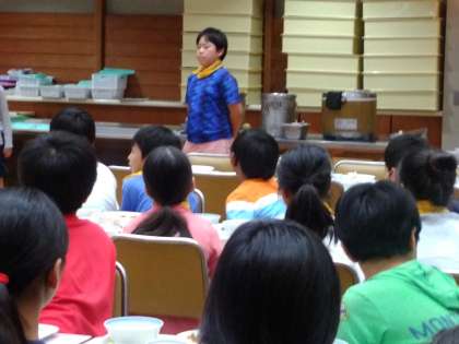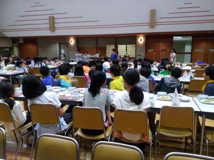 夕食の前に同期校の中根小学校と対面式を行いました。