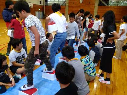 5年八ヶ岳 その27 公開日 2017/09/28 更新日 2017/09/28 5年 次のゲームは、川渡りです。 お風呂の椅子を石に見立てて、石を置きながら全員が川を渡れるようにします。 いいね(0)