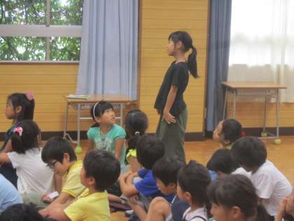 3年生になって始まる「理科」「社会」「総合」「リコーダー」「毛筆での書写」「少人数での算数」について、2年生に発表を聞いてもらいました。