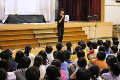 公開講座の後、中井貴恵さんが代表を務める大人と子供のための読み聞かせの会の方々にご来校いただき、「ちいちゃんのかげおくり」をご講演いただきました。
