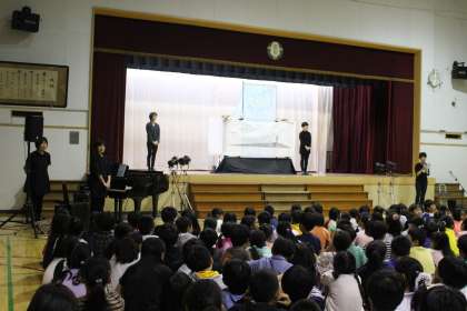 感情のこもった朗読とそれを引き立てるピアノ演奏で、全ての児童、保護者が絵本の中に引き込まれていきました。