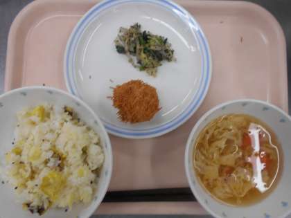 10月11日 栗のいが 公開日 2017/10/12 更新日 2017/10/12 給食 献立 さつま芋ご飯、いが栗揚げ、かきたま汁、ごま酢和え、牛乳 材料の主な産地 玉ねぎ にんじん だいこん 北海道、もやし 神奈川県、 さつまいも 千葉県、きゃべつ 群馬県、いか ペルー、 たまご 青森県、豆腐 愛知県・佐賀県、 いいね(0)