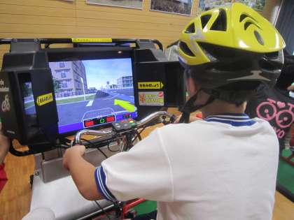 自転車シミュレーターを活用した自転車教室を行いました。