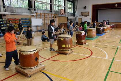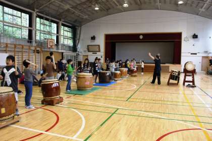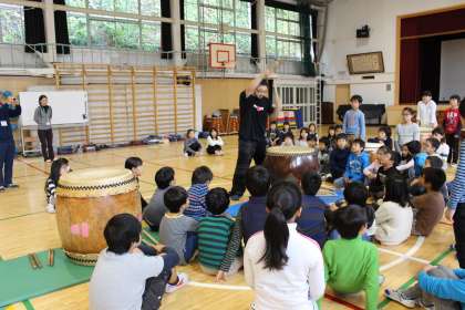 目黒子ども劇場jのお取り計らいで、和太鼓の授業をさせていただきました。