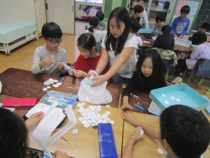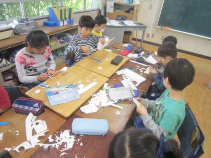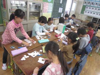 最近社会で学習した「工場で働く仕事」をお手本に、流れ作業で上手に仕事を進めています。とても楽しそうで、見ている方もうれしい気持ちになります。