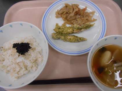 ごはん のりのつくだに、ちかのいそべ揚げ、