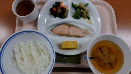 朝食は、鮭の塩焼きです。