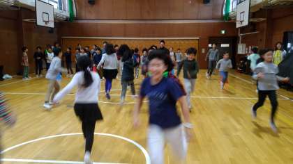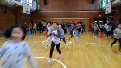 最後のゲームは、スーパー折り返しリレーをしました。ジャンケンに負けると、全員で走らなければなりません。