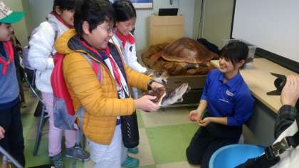 ウミガメとのふれあいもさせていただきました。