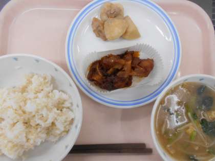 11月24日 いい和食の日 公開日 2017/11/27 更新日 2017/11/27 給食 献立 ごはん、カレイの揚げ煮、里芋と鶏肉のたきあわせ、 もやしのみそ汁、牛乳 材料の主な産地 里芋 東京都 人参 こまつな 埼玉県、いんげん 長崎県、 たまねぎ 北海道、もやし 神奈川県、 カレイ アメリカ、油揚げ 愛知県・佐賀県、 鶏肉 宮崎県、わかめ 四国、 いいね(0)