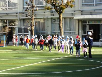 朝8:20、ちょうど登校が終わった時刻に避難訓練を行いました。