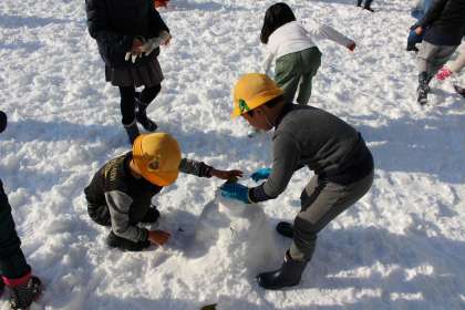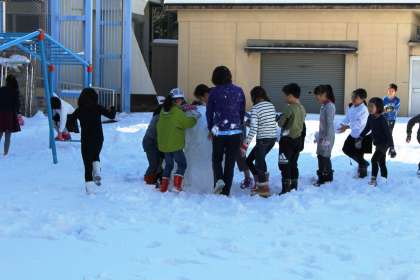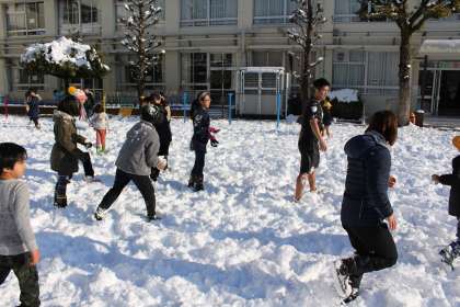 東京では4年ぶりの大雪となり、校庭には真っ白なふかふかな雪が一面に積もっていました。