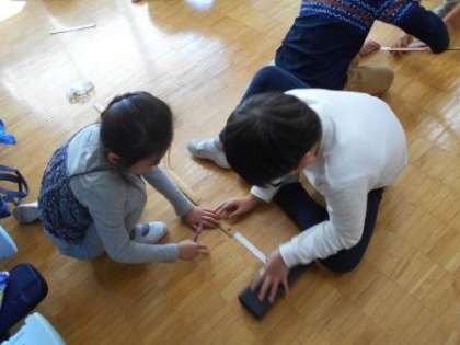 算数 長さの学習 2年 公開日 2018/02/02 更新日 2018/02/02 2年 両手を広げた長さのテープをはかります。 100cmのものさしは、1回で長い長さがわかるので 30cmものさしを何回も使うより便利だ、ということがわかりました。 2人で協力して、テープの長さを測りました。 「このテープが、だいたい自分の背の高さと同じくらいだ」 と聞いて、びっくりしていました。 いいね(0)