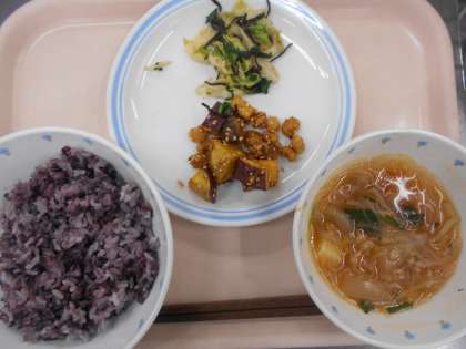 5月18日 旬の魚 公開日 2018/05/18 更新日 2018/05/18 給食 献立 黒米いりごはん、かつおの三色揚げ、春雨のピリカラ煮込み、 塩昆布和え、牛乳 材料の主な産地 小松菜 東京都西東京市、 玉ねぎ 北海道、チンゲンサイ 愛知県、もやし 神奈川県、 にら きゃべつ 千葉県、さつまいも 鹿児島県、 豆腐 愛知県・佐賀県、豚肉 熊本県、 いいね(0)