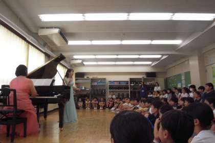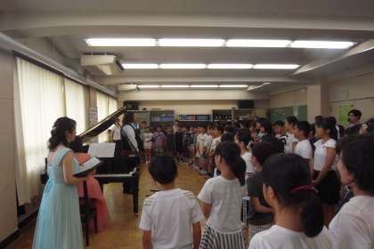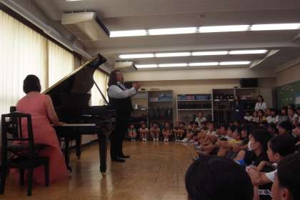 プロの方々の生演奏を聞くことができ、その迫力にみんなとても驚いていました。最後には「菅刈フォーエバー」を一緒に歌ってもらい、歌うときのアドバイスもしてもらいました。