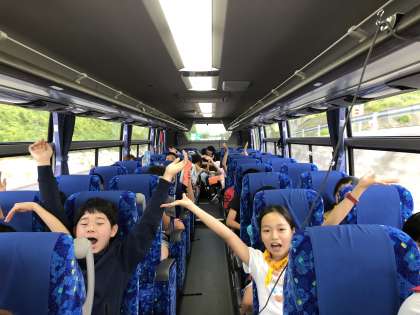 大カラオケ大会が始まりました。バスレクの司会が最高にうまいです。みんな元気です。