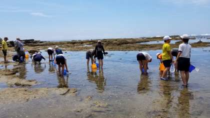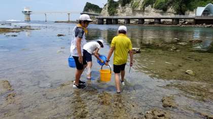 礒観察が終わり、捕まえた生き物をリリースします。みんな名残惜しそうです。