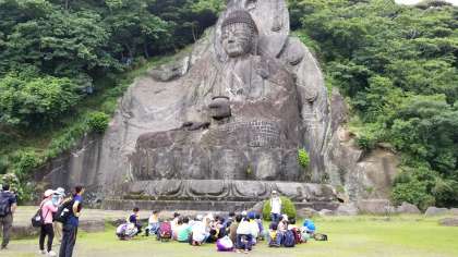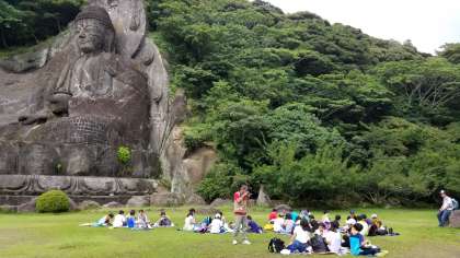 お弁当は、大仏の前で食べます。