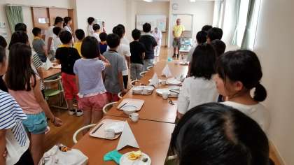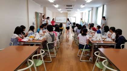 食事係の子から4日間お世話になったお礼が言いたいという申し出があり、ごちそうさまの時に、みんなでお礼を言いました。