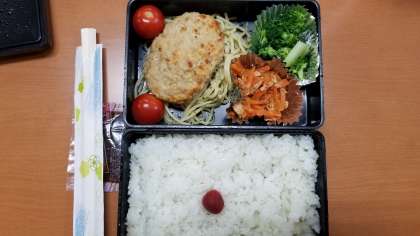 昼ごはんは、学園に戻って食べました。メニューは、ハンバーグ弁当です。